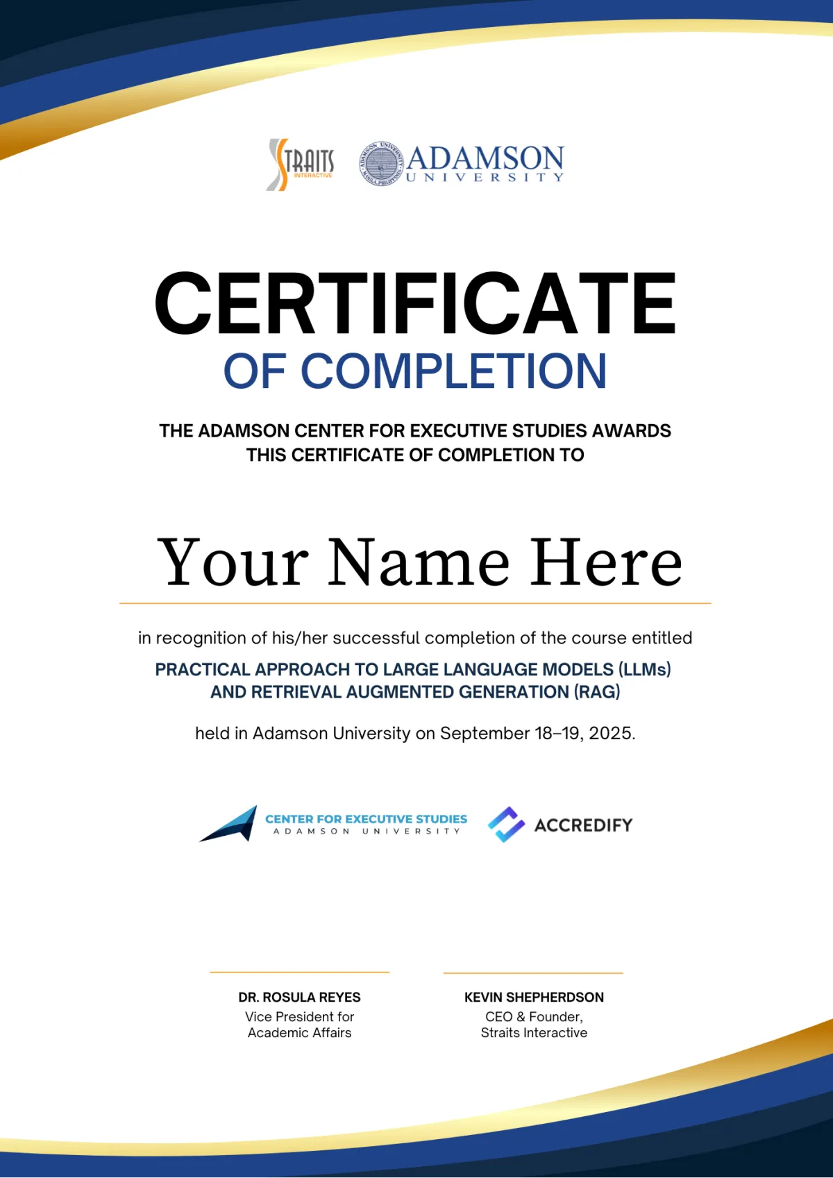 Official Certificate of Completion from Adamson Center for Executive Studies